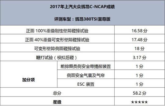 ????????輝昂成為“國(guó)家名片”,出色的安全性能同樣至關(guān)重要。在2017年度C-NCAP第一批車型的評(píng)價(jià)結(jié)果中,輝昂獲得58.2的高分,是C-NCAP 2015年版規(guī)則實(shí)施以來(lái)的最高分。