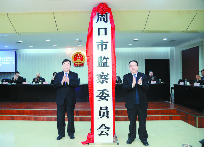 市委書記、市人大常委會主任劉繼標(biāo),市人大常委會副主任、黨組書記劉國連為新成立的周口市監(jiān)察委員會揭牌。記者王映攝