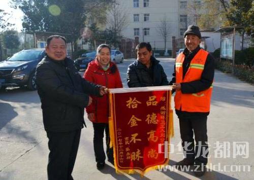 “失主丟了東西肯定很著急?!眲⒐椧贿呉贿叺?,在寒風(fēng)中一等就是3個(gè)小時(shí)。終于,貌似失主的張先生和妻子行色匆忙的來(lái)到皂角樹廣場(chǎng),劉公綏看到兩人比較著急,便主動(dòng)上前詢問(wèn)。經(jīng)詢問(wèn)后確定他們就是失主,當(dāng)即物歸原主。為表達(dá)謝意,三天后,失主張先生把一面寫有“拾金不昧,品德高尚”的錦旗親手送到劉公綏手上。