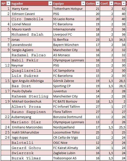 目前為止,凱恩已經(jīng)打進(jìn)21粒聯(lián)賽進(jìn)球,超過(guò)卡瓦尼、因莫比萊,高居歐洲金靴獎(jiǎng)的第一名。梅西以19粒進(jìn)球位居第4。蘇亞雷斯近期狀態(tài)回暖,連續(xù)取得進(jìn)球,目前也收獲了15粒進(jìn)球,并列內(nèi)馬爾,位居第12名。