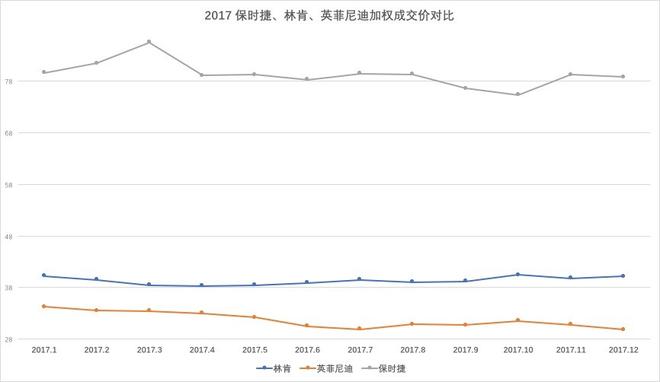 保時(shí)捷、林肯、英菲尼迪銷量在5-10萬之間為第三陣營(yíng),保時(shí)捷品牌比較節(jié)制,對(duì)銷量一直沒有過多追求,銷售方式與其他豪華品牌不同,多以訂單方式銷售,經(jīng)銷商利潤(rùn)連續(xù)兩年行業(yè)中為最好;全進(jìn)口車型為主的林肯成交價(jià)在39萬上下,今年銷量增速最快,價(jià)格走勢(shì)也非常好,但產(chǎn)品進(jìn)入銷售中期,與其他品牌新款車型對(duì)比不占優(yōu)勢(shì);英菲尼迪今年沒有太多走量新車,國產(chǎn)車型也面臨改款,成交價(jià)在30萬上下,隨新款QX50上市,Q50L改款,銷量和成交價(jià)有望走高。