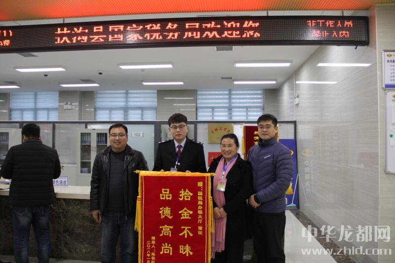 中華龍都網(wǎng)訊(周口報(bào)業(yè)全媒體記者 謝永靜)1月22日剛剛上班,陳秋旺和同事手拿“拾金不昧品德高尚”的錦旗來到扶溝縣國(guó)稅局辦稅服務(wù)廳,專程向拾金不昧的工作人員常征致謝。