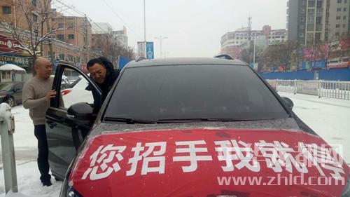 趙明禮個(gè)子不高,留著光頭,說起話來滿臉笑容。他說自己是一家汽車快修店的老板,1月24日下午下雪后,店里就沒有了生意。他覺得閑來無(wú)事,看到路上行人打車難、出行難,就萌生了開私家車免費(fèi)接送市民的想法。