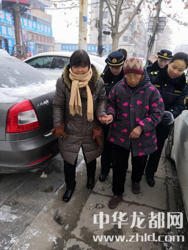 當(dāng)日早上8點(diǎn)15分許,正在西華縣明德小學(xué)附近執(zhí)勤的縣城管局女子中隊(duì)的一名隊(duì)員突然發(fā)現(xiàn)一位老婆婆時(shí)而左右張望,時(shí)而喃喃自語。這名隊(duì)員立即上前詢問該名老人是否遇到困難時(shí),還未等隊(duì)員說話,老人就張口說:“閨女,我不知道回家的路了?!苯?jīng)過耐心溝通得知,老人當(dāng)日從老家來縣城找閨女,但是忘了閨女家怎么走。老人只記得兒子的名字,其它一無所知。女子中隊(duì)的隊(duì)員們一邊安撫老人的情緒,一邊把老人的情況、照片與其兒子的姓名等信息發(fā)到西華縣城市管理工作群,并用對(duì)講機(jī)通知讓大家共同關(guān)注幫忙尋求線索。城市管理工作群的群?jiǎn)T們及時(shí)把信息轉(zhuǎn)發(fā)到朋友圈,很快工作群里有了回復(fù)信息,有人認(rèn)識(shí)老人的兒子,并提供了聯(lián)絡(luò)方式等信息。通過電話溝通,證實(shí)了高某正是老人的兒子。因?yàn)樘鞖夂?,想著老人行?dòng)不便而且容易著涼,為盡快把老人送到家人身邊,女子中隊(duì)的隊(duì)員們隨即把老人扶上車送其回家。