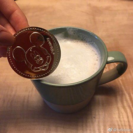 正當(dāng)她著急滿足孩子的心愿而一籌莫展之時(shí),突然機(jī)智地想出一個(gè)應(yīng)變方法。做好后,她娓娓道來(lái):“真的也是難不倒我,直接化了兩塊金幣巧克力,再用咖啡機(jī)給牛奶打奶泡。哈哈哈哈,兒童咖啡出爐了?!?/p>