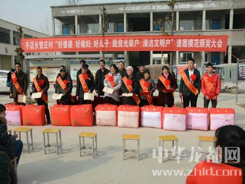 中華龍都網(wǎng)訊(周口報(bào)業(yè)全媒體記者 付永奇 趙永昌 文/圖))2月10日下午,商水縣平店鄉(xiāng)曾莊小學(xué)操場(chǎng)內(nèi),人頭攢動(dòng)、熱鬧非凡,村里評(píng)選出來(lái)的10位好婆婆、好媳婦、好兒子、清潔文明戶(hù)、脫貧光榮戶(hù)等“五好”群眾代表身披綬帶、胸戴紅花,臉上都洋溢著幸福的喜悅;一些民間文藝團(tuán)體分別助興表演了挑花籃、扇子舞、廣場(chǎng)舞等喜慶的節(jié)目,把現(xiàn)場(chǎng)氣氛烘托得異常隆重?zé)崃??!盀楹霌P(yáng)社會(huì)公德、家庭美德,提升群眾素質(zhì)和文明程度,春節(jié)來(lái)臨之際我們召開(kāi)‘五好’表彰大會(huì),下面有請(qǐng)鄉(xiāng)黨委副書(shū)記、鄉(xiāng)長(zhǎng)徐汝濤給大家講話......”隨著主持人、鄉(xiāng)紀(jì)委書(shū)記劉新光的開(kāi)場(chǎng)白,臺(tái)下響起了一陣熱烈的掌聲。“開(kāi)展好婆婆、好媳婦、好兒子、清潔文明戶(hù)、脫貧光榮戶(hù)等模范家庭人物評(píng)選是我鄉(xiāng)精神文明建設(shè)工作的一項(xiàng)重大舉措,也是脫貧攻堅(jiān)、農(nóng)村人居環(huán)境整治、文明鄉(xiāng)風(fēng)提升的部分內(nèi)容,更是弘揚(yáng)孝親敬老、勤勞致富、講究衛(wèi)生等優(yōu)良傳統(tǒng)的需要。全鄉(xiāng)各村都要通過(guò)召開(kāi)評(píng)選表彰大會(huì),引導(dǎo)廣大人民群眾學(xué)先進(jìn)、爭(zhēng)先進(jìn),為文明和諧平店建設(shè)做出更大的貢獻(xiàn)......”徐汝濤提出殷切的希望。曾莊行政村“兩委”成員、駐村工作隊(duì)、第一書(shū)記及部分群眾200余人參加了會(huì)議。與會(huì)領(lǐng)導(dǎo)為此次層層推薦評(píng)選出的好婆婆、好媳婦、好兒子、清潔文明戶(hù)、脫貧光榮戶(hù)頒發(fā)了榮譽(yù)證書(shū)和獎(jiǎng)品。據(jù)村支部書(shū)記曾紀(jì)靈介紹,這些“五好”模范都有感人的故事,或是講究衛(wèi)生、勤儉持家,孝老敬親、患難與共;或是鄰里互助、脫貧致富;他們用實(shí)際行動(dòng)證明了自己對(duì)文明風(fēng)尚的價(jià)值追求,在生活中書(shū)寫(xiě)了一個(gè)個(gè)接地氣的好故事,為廣大家庭樹(shù)立了好榜樣。受表彰的好婆婆胡秀英說(shuō):“把媳婦當(dāng)閨女,啥時(shí)候也不會(huì)吵架生氣......”清潔文明戶(hù)朱國(guó)申說(shuō):“農(nóng)村環(huán)境臟亂差,咱要帶頭改變它......”脫貧光榮戶(hù)劉前進(jìn)說(shuō):“國(guó)家扶貧政策好,不如早點(diǎn)摘掉貧困帽!”