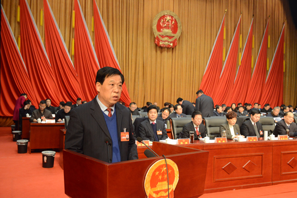 受縣十五屆人大常委會的委托,縣人大常委會主任李國際向大會報告工作。