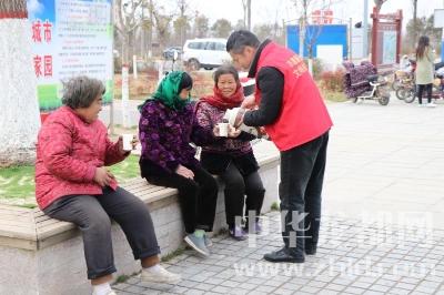 細(xì)心的志愿者們還為健身、散步、游玩的市民準(zhǔn)備了開水和杯子,為他們驅(qū)走寒意、溫暖雙手、滋潤心田?!鞍澈涸诩乙矝]想著給我倒杯水喝啊,恁還大老遠(yuǎn)給我送來!”接過志愿者手中的開水,一位老人十分激動。