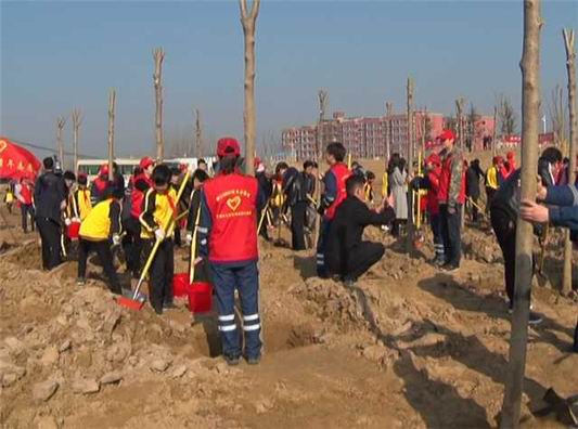 在大家的辛勤勞動下,現(xiàn)場栽種的樹苗在春風里亭亭玉立、錯落有致,為項城市增添了一道靚麗風景。