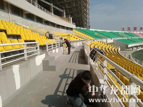 中華龍都網(wǎng)訊(周口報業(yè)全媒體記者 韓志剛 文/圖)為了迎接即將到來的省運會,我市最大的體育場——周口市體育中心體育場正在進(jìn)行改造升級。3月13日,記者在周口市體育中心體育場看到,工人們正在維修場館內(nèi)外墻,破損墻面已經(jīng)重新粉刷膩子。今年9月,河南省第十三屆運動會開幕式將在這里舉行。