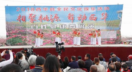 中華龍都網(wǎng)訊(周口報(bào)業(yè)全媒體記者 張猛)在西華縣第十四屆桃花節(jié)期間,由縣委宣傳部、縣文廣新局主辦的“相聚桃源 舞動西華”百姓健康舞展演活動,在黃橋鄉(xiāng)萬畝桃園舉行,來自全縣的10 余支舞蹈隊(duì)參加展演?;顒游姸嗍忻?、游客前來觀看。