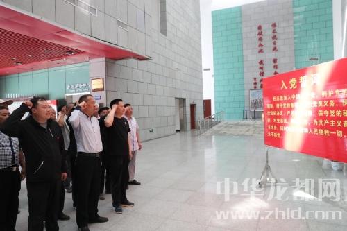 活動前,佩戴黨徽老黨員和部分村民代表在村委院內(nèi),舉行了簡約而不失莊重的升旗儀式?!拔抑驹讣尤胫袊伯a(chǎn)黨,擁護黨的綱領,遵守黨的章程,履行黨員義務,執(zhí)行黨的決定,嚴守黨的紀律,保守黨的秘密…… ”活動中,老黨員們在吉鴻昌將軍雕塑前重溫入黨誓詞,并向黨旗莊嚴宣誓。
