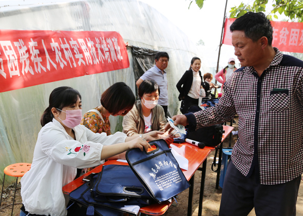 5月10日,在鹿邑縣馬鋪鎮(zhèn)完樓村殘疾人士付天軍的培訓(xùn)基地——蔬菜種植合作社助殘大棚內(nèi),來自鹿邑縣馬鋪鎮(zhèn)、渦北鎮(zhèn)產(chǎn)業(yè)集聚區(qū)的150多名建檔立卡貧困殘疾人,齊聚這里免費(fèi)學(xué)習(xí)黃瓜種植技術(shù),付天軍在大棚內(nèi)手把手地進(jìn)行指導(dǎo),來自華陽學(xué)校的農(nóng)業(yè)專家李中蘭也應(yīng)邀在大棚內(nèi)對常見的病蟲害進(jìn)行詳細(xì)講解。