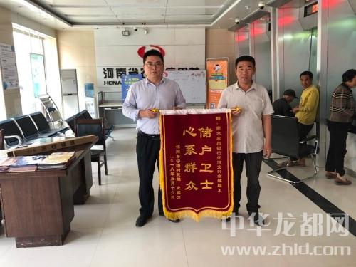 中華龍都網(wǎng)訊(周口報(bào)業(yè)全媒體記者 付永奇 通訊員 高少輝)5月24日上午,商水縣化河鄉(xiāng)村民史學(xué)習(xí)和村支書(shū)一同來(lái)到商水農(nóng)商銀行化河支行,為該支行送來(lái)一面“儲(chǔ)戶衛(wèi)士 心系群眾”的榮譽(yù)錦旗,感謝該支行幫其找到丟失的現(xiàn)金。