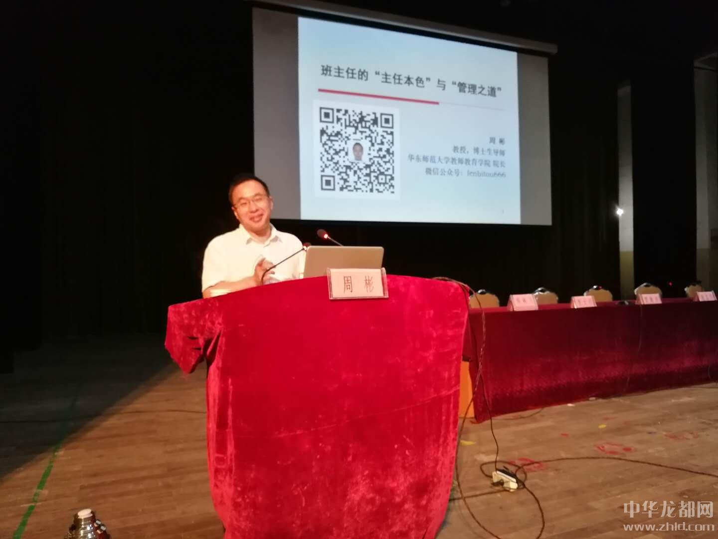 上午,簡短的開班儀式后,華東師范大學教師教育學院院長、教育學博士周彬圍繞班主任的“主任本色”與“管理之道”開講,他結(jié)合自身工作實踐經(jīng)驗詳細闡述了班主任要處理的四種關(guān)系,即:班主任與老師的關(guān)系、班主任與學生的關(guān)系、班主任與學生家長的關(guān)系和班主任與班委的關(guān)系。他詼諧語言、淵博的學識贏得了參訓人員的陣陣掌聲。