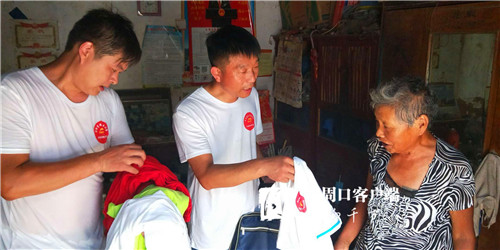 捐贈(zèng)儀式上,太康縣商務(wù)局局長李曉虹和清集鎮(zhèn)黨委書記吳文靜向張子穎村捐贈(zèng)愛心體恤衫。隨后由各位領(lǐng)導(dǎo)帶隊(duì)向困難群眾發(fā)放愛心體恤衫,并鼓勵(lì)他們樹立信心、克服困難,早日走向富余。