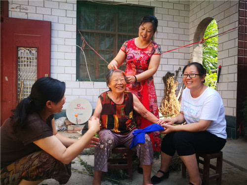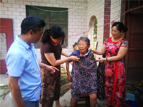 7月29日上午,周口市太康縣五里口鄉(xiāng)桂李行政村82歲老人石鳳蘭格外高興:該縣工商局翟保紅等3名駐村女扶貧干部相約來(lái)到她家里看望,并為她買來(lái)新衣服等。“沒(méi)想到老了老了,又多了3個(gè)好閨女,這日子真是越過(guò)越好啊!”石鳳蘭老人高興地說(shuō)。