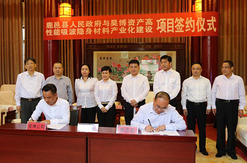 儀式上,閆家明首先代表縣四個(gè)班子領(lǐng)導(dǎo)和百萬鹿邑人民對(duì)前來參加簽約儀式的李佳一行表示歡迎和感謝。他說,昊博資產(chǎn)高性能吸波隱身材料產(chǎn)品屬于新型材料,又是軍民融合項(xiàng)目,該項(xiàng)目的落地就實(shí)現(xiàn)全縣產(chǎn)業(yè)轉(zhuǎn)型升級(jí)具有里程碑意義。他指出,近年來,鹿邑縣實(shí)施“產(chǎn)業(yè)興城、文化立縣”發(fā)展戰(zhàn)略,堅(jiān)持五區(qū)聯(lián)動(dòng)、推進(jìn)項(xiàng)目建設(shè),今年共謀劃項(xiàng)目131個(gè),總投資311億元,今年計(jì)劃總投資180億元,其中,列入省重點(diǎn)項(xiàng)目7個(gè)。經(jīng)過近年來的努力,鹿邑縣產(chǎn)業(yè)集聚區(qū)晉升為全省二星級(jí),被評(píng)為“全省十快產(chǎn)業(yè)集聚區(qū)”。在與昊博資產(chǎn)洽談交流后,縣委縣政府十分重視,經(jīng)過多方考察,一致認(rèn)為該項(xiàng)目符合國家產(chǎn)業(yè)政策,項(xiàng)目簽約落地以后,縣委縣政府將成立建設(shè)指揮部,全力以赴支持項(xiàng)目建設(shè)、企業(yè)發(fā)展。