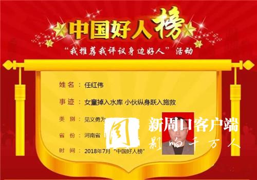 7月30日,中央文明辦全國道德模范與身邊好人現(xiàn)場交流活動在長春舉行,現(xiàn)場發(fā)布了7月“中國好人榜”,太康縣任紅偉光榮入選7月份見義勇為類中國好人榜。目前,太康縣入選中國好人榜人數(shù)已達(dá)39人。
