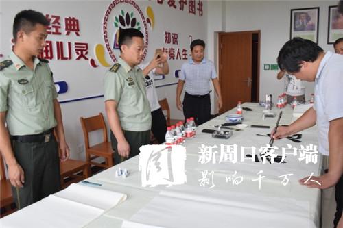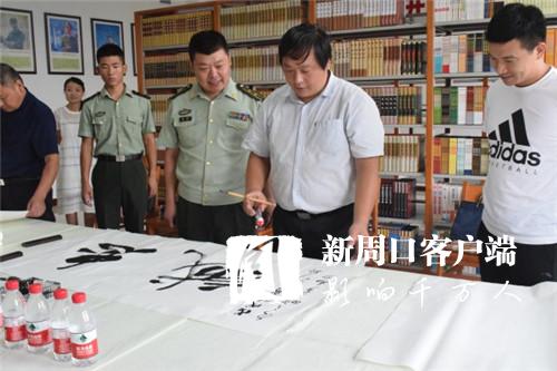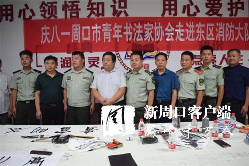 為進(jìn)一步充實(shí)官兵的警營(yíng)文化生活,喜迎建軍91周年,7月30日下午,周口市青年書法家協(xié)會(huì)會(huì)長(zhǎng)李為等人走進(jìn)東新區(qū)消防大隊(duì),現(xiàn)場(chǎng)揮毫潑墨,用飽蘸感情的書法作品向消防官兵表達(dá)了節(jié)日祝福。