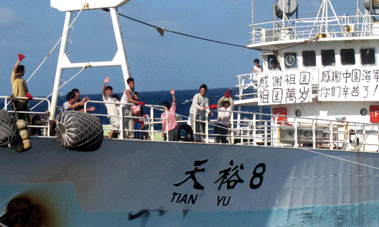 2009年2月5日,正執(zhí)行伴隨護(hù)航任務(wù)的海口艦接到上級命令,到索馬里霍比亞附近海域,接護(hù)“天裕8號”漁船。