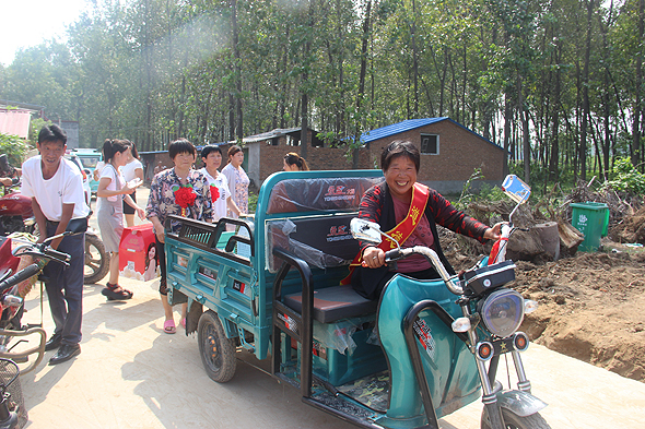在鄉(xiāng)村振興中,商水縣郝崗鎮(zhèn)大張旗鼓地對(duì)評(píng)選出的6名“好婆婆”、15名“好媳婦”、8戶“孝賢之家”、582戶“十星級(jí)文明戶”進(jìn)行表彰,旨在在全鎮(zhèn)樹(shù)立文明新風(fēng)導(dǎo)向,傳播孝老敬老、誠(chéng)實(shí)守信理念。圖為8月22日,剛剛受到表彰的西黃村“好媳婦”郝愛(ài)榮滿面春風(fēng)地行駛在鄉(xiāng)間道路上。