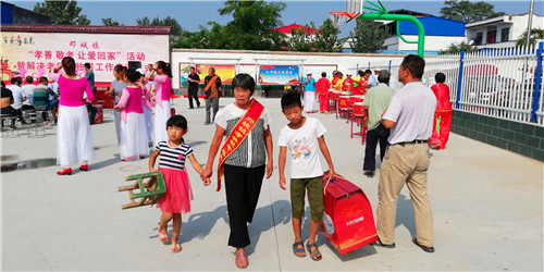 為弘揚(yáng)孝善敬老傳統(tǒng)美德,充分發(fā)揮孝善敬老文化在助推脫貧攻堅(jiān)中的作用,8月24日,商水縣鄧城鎮(zhèn)在江村舉行“孝善敬老,接愛(ài)回家”啟動(dòng)活動(dòng)。會(huì)上對(duì)全鎮(zhèn)26名孝善敬老道德模范進(jìn)行表彰,拉開(kāi)全鎮(zhèn)孝善敬老接愛(ài)回家序幕。