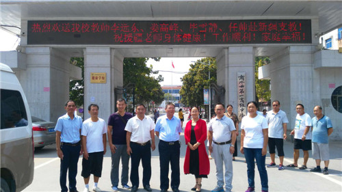 本次援疆工作是經(jīng)過個(gè)人申報(bào)、組織審查,最后確定李遠(yuǎn)東、畢雪靜、婁高峰、任帥、王玉建、柴美蘭、王春光等7名教師,他們分別來自商水縣一高、二高、希望中學(xué)、縣直一 小四所學(xué)校。他們已經(jīng)于26日出發(fā)。