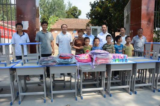 8月27日上午11時(shí)許,商水縣平店鄉(xiāng)大朱莊村小學(xué)大 門(mén)外,突然停放一輛廂式貨車(chē)??吹接袉挝凰蛠?lái)了“開(kāi)學(xué)禮”,學(xué)校老師和學(xué)生滿(mǎn)臉興奮 、七手八腳和來(lái)人一塊卸下一些嶄新的課桌凳、書(shū)包文具等學(xué)習(xí)辦公用品。