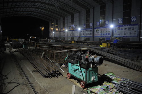 當(dāng)晚21時(shí)許,記者在泰和家園施工現(xiàn)場(chǎng)看到,鋼筋加工棚的工人們正在進(jìn)行鋼筋的切割,他們?cè)跒槊魈焓┕?zhǔn)備鋼筋材料。A1#樓正在進(jìn)行墊層的澆筑工作,A8#樓正在進(jìn)行負(fù)一層及周邊地庫(kù)的鋼筋綁扎及模板加固工作,A9#樓正在進(jìn)行負(fù)一層墻柱鋼筋及模板內(nèi)架搭設(shè)工作。現(xiàn)場(chǎng)2臺(tái)鋼筋切割機(jī)在不停地運(yùn)轉(zhuǎn),9臺(tái)塔吊在持續(xù)工作,40余名施工人員在場(chǎng)地內(nèi)各司其職,緊張而有序地趕進(jìn)度,整個(gè)施工現(xiàn)場(chǎng)如火如荼。