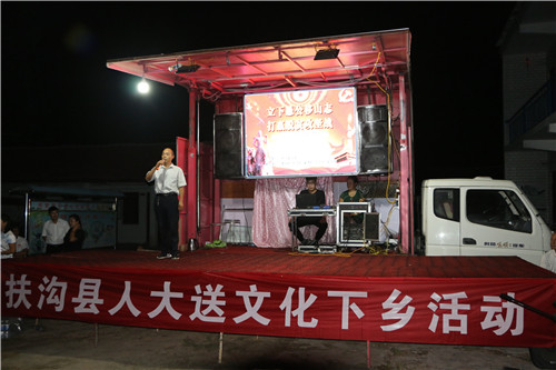 8月29日晚,扶溝縣人大“歡樂中原·文明扶溝”文化扶貧流動舞臺走進包屯鎮(zhèn)譚崗村,為村民送來了一道激發(fā)脫貧斗志的精彩文化“大餐”。縣人大副主任魏軍占、姚扶延、陳建華和縣委宣傳部、包屯鎮(zhèn)黨委政府相關領導,和譚崗村干群共同觀賞了形式多樣的演出節(jié)目。