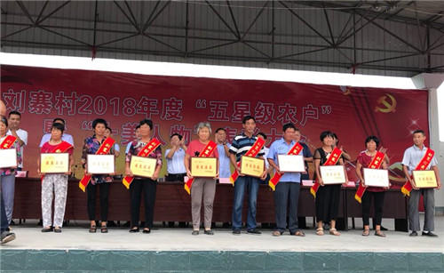 劉寨村黨支部書記閆繼昌首先宣讀了村黨支部、村委會(huì)、村新風(fēng)協(xié)會(huì)《關(guān)于對(duì)2018年度“十類最美人物”和“星級(jí)農(nóng)戶”進(jìn)行表彰的決定》,與會(huì)領(lǐng)導(dǎo)和企業(yè)負(fù)責(zé)人向劉寨村50名最美黨員、最美青年、最美庭院、最美媳婦、最美家庭、最美婆婆、最美環(huán)衛(wèi)、最美鄰里最美鄉(xiāng)賢、最美致富能手“十類最美人物”和5個(gè)“星級(jí)農(nóng)戶”頒發(fā)了獎(jiǎng)牌和禮品。其中“最美媳婦”兩份獎(jiǎng)品,另一份獎(jiǎng)品送到娘家,“一雙好媳婦,幸福三代人”。