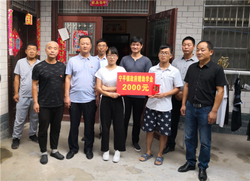 鄲城縣公安局駐王寨行政村第一書記朱金光帶領(lǐng)隊(duì)員邵濤、亞光,在走訪調(diào)查中得知這一情況,積極向鄲城縣慈善總會申請助學(xué)金2000元,向團(tuán)縣委申請希望工程圓夢行動助學(xué)金3000元,并向公安局黨委匯報(bào),局長陳鳳祥、政委趙紅建高度重視召開黨委會研究決定給王海洋家特批6000元助學(xué)金,寧平鎮(zhèn)黨委、鎮(zhèn)政府得到消息后,也第一時(shí)間作出響應(yīng),幫助困難孩子圓大學(xué)夢。