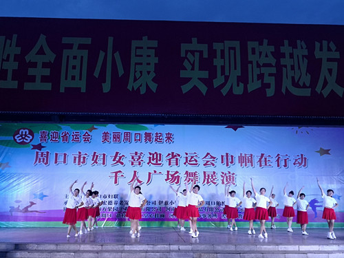 9月5日下午,伴隨著開場序曲大盤鼓《歡天喜地舞起來》,由周口市婦聯(lián)主辦的全市婦女“喜迎省運會 巾幗在行動”千人廣場舞展演活動拉開序幕。活動現(xiàn)場,20余支廣場舞隊伍現(xiàn)場展演,共同為省運會在咱家門口舉辦加油助威、增光添彩,展示了周口全民健身運動的累累碩果和新時代女性的幸福生活。