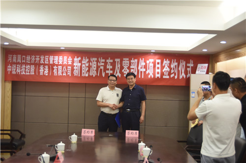 9月5日,周口經濟開發(fā)區(qū)與中銳科技控股(香港)有限公司就新能源汽車及零部件項目建設成功簽約。開發(fā)區(qū)黨委書記田林、管委會主任王文峰、管委會副主任支利民,中銳科技控股(香港)有限公司董事長張健源、中銳電源公司總經理王力和等出席簽約儀式。