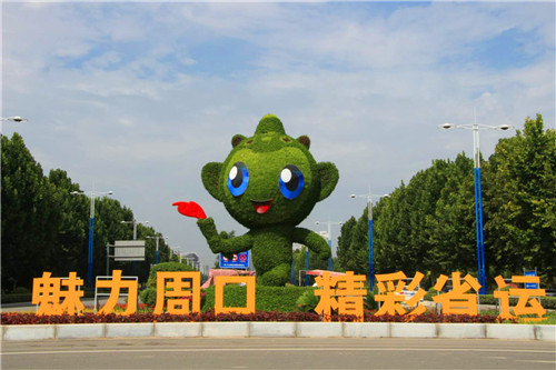 當(dāng)日上午,記者在東新區(qū)周口大道與文昌大道交叉口看到,巨大的運動會吉祥物造型“泥娃”正在招手,向每一位路人致意?!镑攘χ芸?,精彩省運”的口號立于泥娃兩側(cè),引人注目。中心路口的轉(zhuǎn)盤花壇內(nèi)已煥然一新,五顏六色的花朵正以嬌艷的姿態(tài),歡迎四海賓朋共聚周口。
