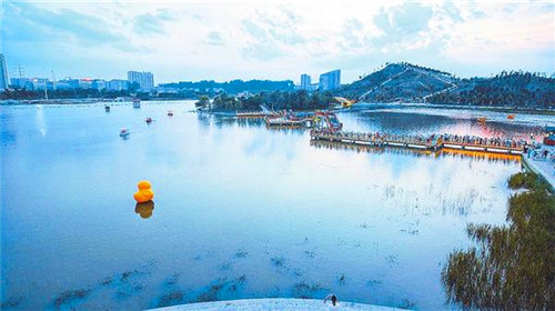 時(shí)下,漫步在鹿邑縣上清湖公園,亭臺(tái)樓榭處處皆景;朝暉、晚霞,倒映水中;夜幕下的景色更是美輪美奐。據(jù)了解,上清湖水域面積達(dá)到16.7公頃,建有親水平臺(tái)、游船碼頭、兒童沙灘、湖心島、音樂(lè)噴泉、景觀橋、觀水亭、假山等景點(diǎn)。踏著青石臺(tái)階或沿著假山坡道來(lái)到山頂或登臨十多米高的觀水亭,可以俯瞰整個(gè)湖區(qū),繞湖車道、步行園道、健康游道像三條紅飄帶圍繞湖區(qū),東北角的正清林里修竹清風(fēng),魅影婆娑,加之周邊林立高樓倒映水中,湖光山色美不勝收,令人流連忘返。圖①②③④為上清湖風(fēng)景。記者 李瑞才 通訊員 胡洪濤 文/圖