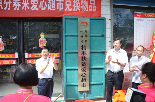 9月7日,址坊鎮(zhèn)葉橋行政村舉行了愛心超市揭牌儀式,縣委常委、常務(wù)副縣長王獻(xiàn)超、縣審計局局長劉可為愛心超市揭牌,址坊鎮(zhèn)鎮(zhèn)長潘厚君、駐村第一書記吳莉、愛心企業(yè)家方凱及葉橋全體村干部、部分村民代表出席儀式。