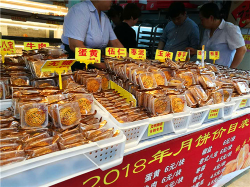 “給我拿兩斤青紅絲酥皮和五仁的。”一位50出頭的女士邊付錢邊說(shuō),小時(shí)候,過(guò)中秋節(jié),一家人圍坐一起吃這種半斤重的老式月餅,一個(gè)月餅分八塊,一人一塊,現(xiàn)在回想起來(lái),“真甜”!