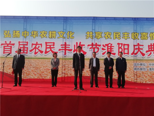 縣委書記馬明超宣布淮陽縣首屆“中國農民豐收節(jié)”慶典活動開幕??h委副書記、政法委書記岳新坦主持慶典儀式。戴亮和副縣長王汝凌分別致辭。