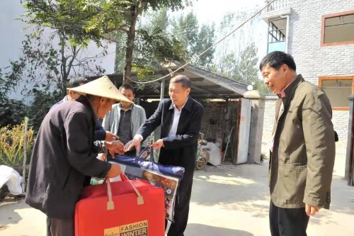 為進(jìn)一步弘揚(yáng)中華民族敬老、愛老、助老的優(yōu)良傳統(tǒng)美德,讓結(jié)隊(duì)幫扶村——太康縣王集鄉(xiāng)李小橋行政村90歲及以上老人過一個溫馨又和諧的重陽佳節(jié),10月12日,周口市稅務(wù)局黨委委員、副局長徐平烽,黨委委員、總會計師李霞,黨委委員、總經(jīng)濟(jì)師張振祥等在對全村9名高齡老人進(jìn)行了走訪慰問,為老人們送上節(jié)日的祝福和價值近2000元的慰問品。