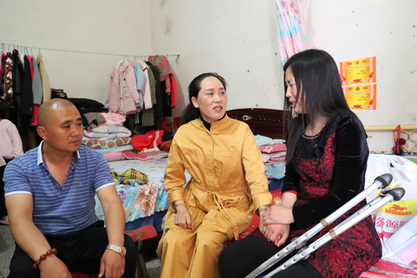 王英是太康縣轉(zhuǎn)樓鄉(xiāng)人,前些年突患股骨頭壞死病,雖花去醫(yī)療費(fèi)幾十萬(wàn)元,但病情并未治愈,從此靠拄雙拐走路,生活陷入困境。前年,在太康縣婦聯(lián)組織的一次獻(xiàn)愛心活動(dòng)中,薛華杰了解到王英的情況后,積極捐款捐物,主動(dòng)把她作為幫扶對(duì)象。平時(shí)薛華杰只要有時(shí)間就去探望,給她送些生活用品,與她嘮嘮家常?!把Υ蠼阋郧芭c俺無親無故,待俺如同親人,常年如一日地對(duì)俺提供無私幫助,讓我感受到社會(huì)帶來的溫暖?!蓖跤⒈硎荆拔乙欢ㄒ獦淞?zhàn)勝病魔的信心,好好地生活,不辜負(fù)好心人厚愛。”