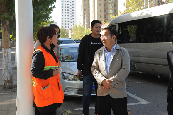 督導(dǎo)中,張建黨親切地與環(huán)衛(wèi)工人進(jìn)行交談,了解他們的工資收入狀況及是否買了人身保險(xiǎn)等情況,并勉勵(lì)他們一定要盡職盡責(zé),當(dāng)好城市的“美容師”。