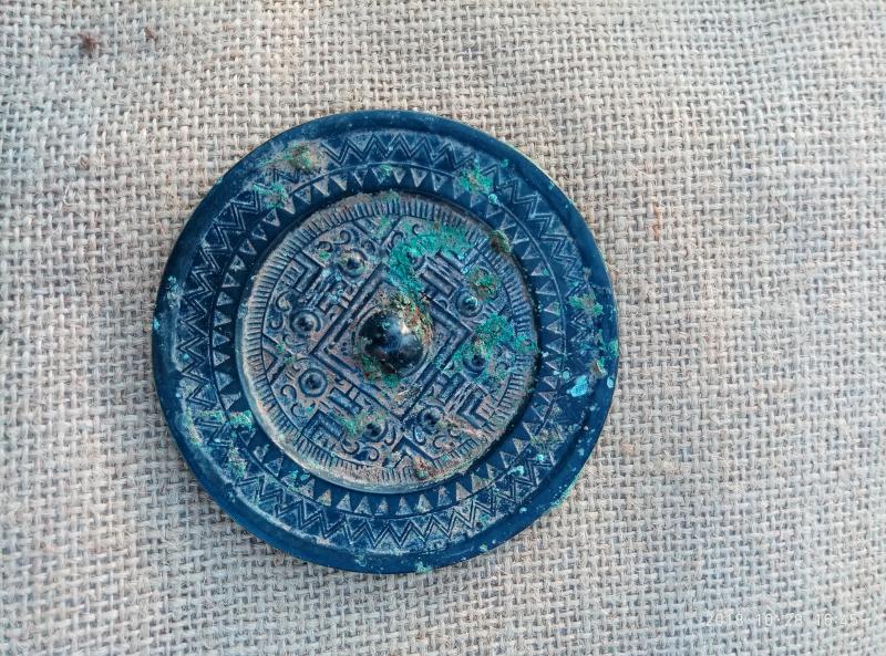 據(jù)悉,這批墓葬因埋藏較淺,均遭到嚴重破壞,出土文物大部分為器物陶片。從殘片上看主要有陶盆、耳杯、陶案、陶樽、陶罐、陶甕、銅錢、銅鏡等,其中八乳規(guī)矩鏡是這次出土的珍貴文物。