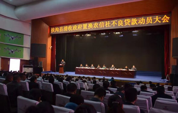 會(huì)上,縣委常委、常務(wù)副縣長(zhǎng)王霄靈宣讀《扶溝縣關(guān)于清收政府置換農(nóng)信社不良貸款行動(dòng)方案》??h委常委、紀(jì)委書記、監(jiān)委主任常青宣讀《扶溝縣清收政府置換農(nóng)信社不良貸款問責(zé)辦法》??h法院院長(zhǎng)徐林、縣公安局局長(zhǎng)田豪杰、縣農(nóng)村信用聯(lián)社理事長(zhǎng)劉軍旗分別作表態(tài)發(fā)言。