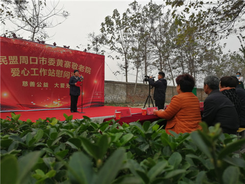 閆冬梅在慰問演出致辭中說,民盟周口市委領導親臨黃寨開展慰問活動,既體現(xiàn)了民盟周口市委對商水縣工作的大力支持,又展現(xiàn)了民盟會員主動承擔社會責任、熱愛社會公益的良好形象,為商水縣全面打好打贏脫貧攻堅戰(zhàn)提供了有力支撐?!胺瞰I愛 心、關愛老人是周口民盟義不容辭的責任和義務,讓老年人能夠老有所養(yǎng)、老有所樂一直是民盟周口市委幫扶的重要內容,今后民盟周口市委將繼續(xù)發(fā)揚優(yōu)良傳統(tǒng),一如既往地支持黃寨敬老院工作,讓老年人的生活水平不斷提高。