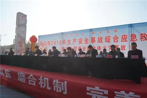 11月23日上午,周口市大型商業(yè)綜合體火災(zāi)事故應(yīng)急救援綜合演練活動(dòng)在淮陽縣天鴻世貿(mào)商場舉行。市政府副秘書長馮干敏,市安委會(huì)副主任、安監(jiān)局局長胡恩勇,市消防支隊(duì)副支隊(duì)長李華兵,淮陽縣委書記馬明超,縣長王毅,以及各縣(市)區(qū)主管安全工作的政府領(lǐng)導(dǎo)出席演練觀摩活動(dòng)?;搓柨h政府應(yīng)急辦、消防大隊(duì)、安監(jiān)局、公安局、衛(wèi)計(jì)委、環(huán)保局、住建局、天鴻世貿(mào)有限公司等20余家單位300余人參與演練活動(dòng)。