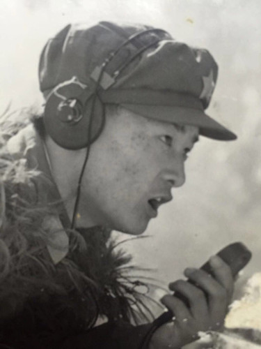 這時(shí)候,反撲的敵人越來越近了,蔣慶泉向指揮部的兩名話務(wù)戰(zhàn)士谷德泰和陸洪坤報(bào)告了這一情況??粗绯彼惚平臄橙?,蔣慶泉拼盡全力,沖著步話機(jī)嘶吼:“別廢話!向我所在的碉堡頂開炮!”。在陣地暗堡中,幸存的戰(zhàn)士緊緊圍在蔣慶泉身邊,以保護(hù)他向我炮兵指揮部通報(bào)目標(biāo)的位置。