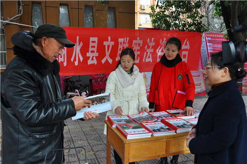 今年12月4日是第五個(gè)國(guó)家憲法日,也是我國(guó)第一個(gè)“憲法宣傳周”。商水縣依法治 縣工作領(lǐng)導(dǎo)小組辦公室組織40多個(gè)普法依法治理成員單位在縣行政路舉辦“12.4”國(guó) 家憲法日集中法治宣傳活動(dòng)。