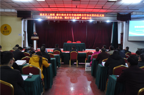 12月10日,商水縣工商聯(lián)、建行商水分行簽署全面戰(zhàn)略合作協(xié)議,共同開展“助力小微企業(yè)、踐行普惠金融”主題宣講活動??h委常委、統(tǒng)戰(zhàn)部長李遠富,縣政協(xié)副主席、工商聯(lián)主席彭發(fā)光,建行周口分行副行長邵崗等領(lǐng)導出席,全縣100多家中小微企業(yè)參加活動。